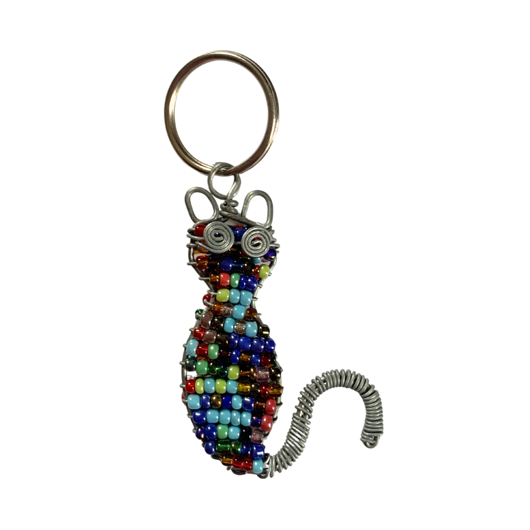 This cute and colourful cat keyring would make a wonderful gift for your favourite cat person. Handmade at a youth employment project in Kenya using recycled copper wire and Maasai beads.