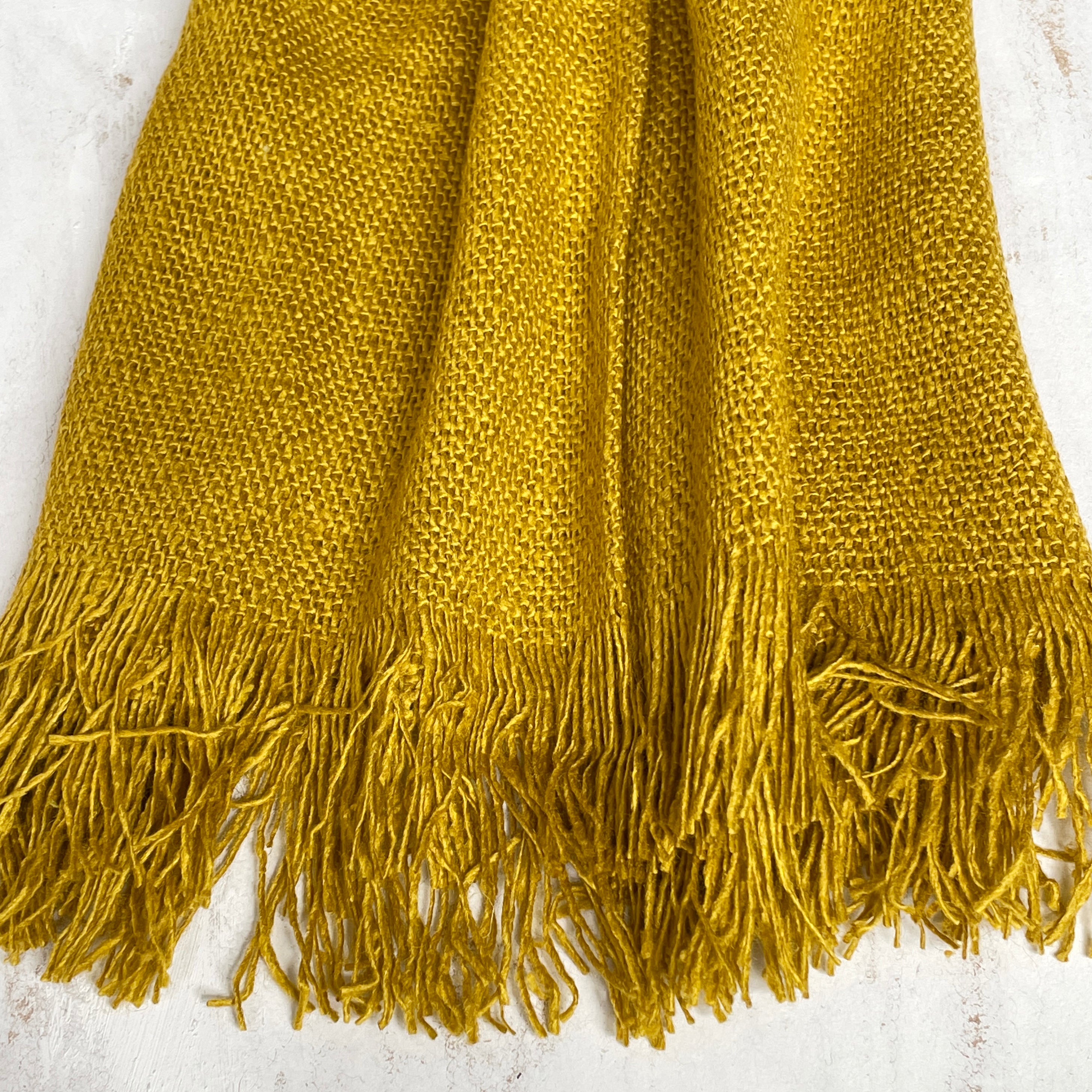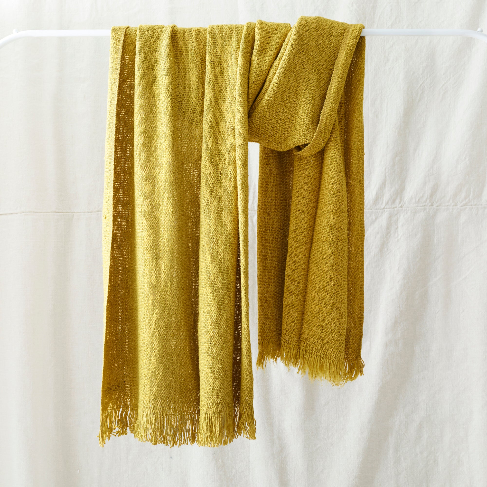 Aura Que banana yarn scarves are light, breathable and full of natural character, with a rustic feel. Over time they soften beautifully, developing a gentle drape that makes them easy to wear every day.
